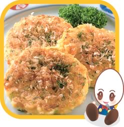 | ④ | 残りも同様に焼き、表面に薄くしょうゆをぬってかつお節、青のりをふる。 |