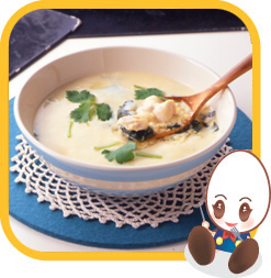 | ② | 器にささみ、わかめ、三つ葉を入れて①を流し入れ、蒸気のあがった蒸し器で強火で3分、弱火で10分蒸す。 |
