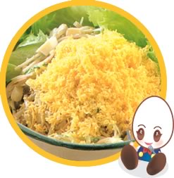 | ④ | タマゴは固ゆでにして黄身と白身に分け、黄身は裏ごしし、白身は粗みじん切りにする。 |